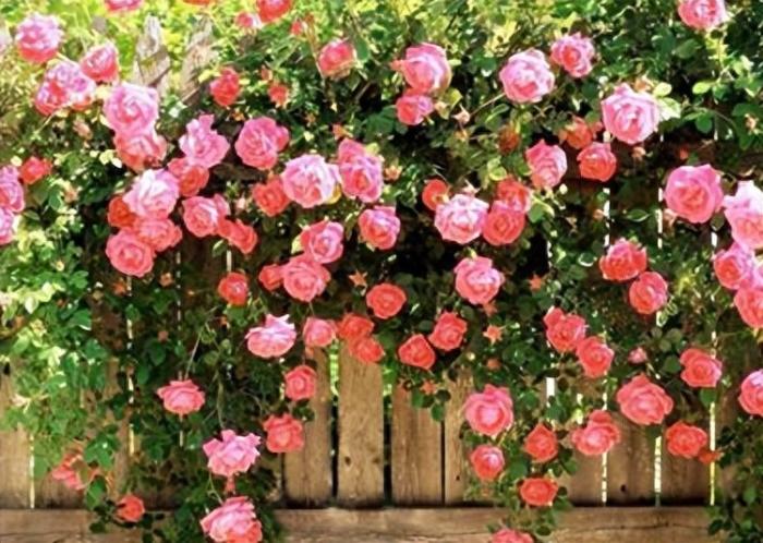 冉冉初夏時,薔薇花又開,開在柵欄上,美麗了籬笆牆,遠遠望著它,數不清的枝條,密匝匝的花,聞著薔薇悠悠香,把愛的思念變濃。